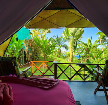The single-story room “IGUANA” is adjacent to the main building with an amazing ocean and rainforest view, balcony with hammock & chair, orthopedic mattresses, ceiling fan, safety box and a private tiled bathroom. This room comes with one full-size and one twin-size bed.