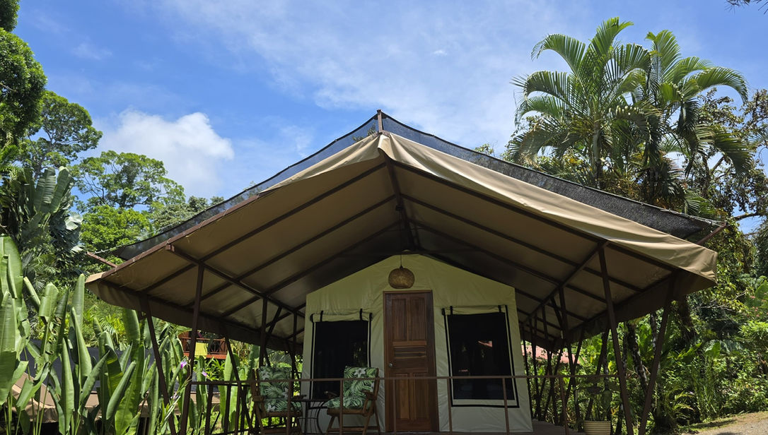 Nuestras tres "TIENDAS PRIVADAS" privadas están ubicadas en una plataforma elevada y tienen un amplio porche delantero con un par de sillones. Cada tienda cuenta con una cama de tamaño completo y una cama individual, vista al mar y al jardín, colchones ortopédicos, ventiladores y electricidad las 24 horas. Estos cómodos alojamientos tienen baño privado exterior que se encuentran cerca de las carpas.